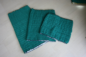 四隅から中心に向かって折ります。折った後はテープなどで止めたほうが良いです。 - 中・小サイズのお皿は立てて、どんぶりは下に向けます。